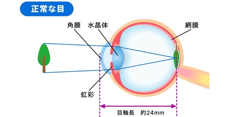 正常な眼軸の長さであれば目の奥にきれいな映像としてとらえられます。